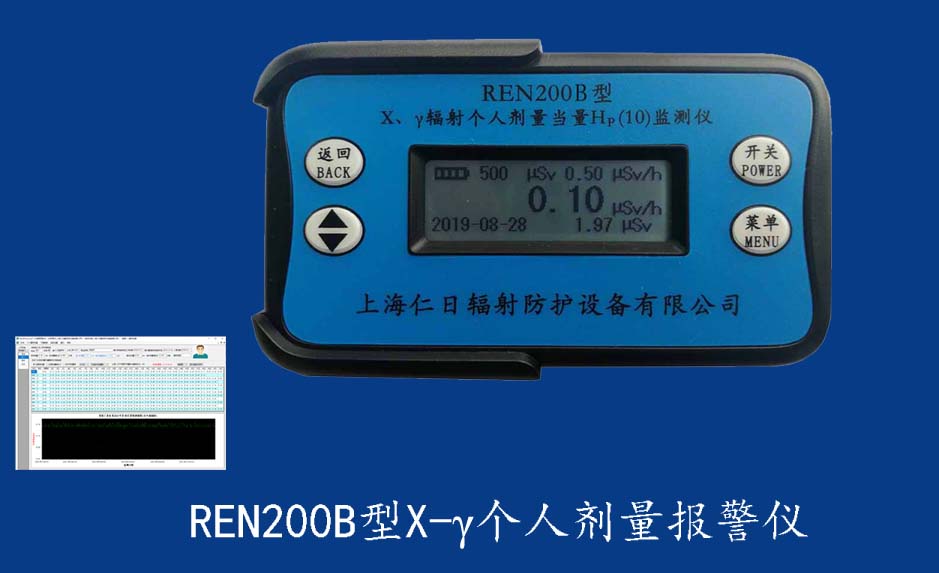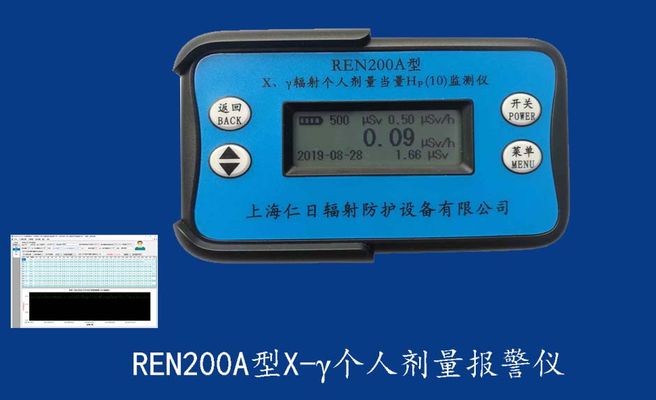 REN200型X、γ個人劑量報警儀(又叫X、γ輻射個人劑量當量HP(10)監(jiān)測儀)內(nèi)置高靈敏度蓋格計數(shù)管為探測器,主要用來監(jiān)測各種放射性工作場所的X、γ以及硬β射線的輻射,具有響應快,測量范圍寬的特點。能顯示工作場所的劑量當量率和累積劑量,更換電池時,日期及累積數(shù)據(jù)能永久保存。可選配RenRiPersonal個人劑量管理軟件,該軟件可存儲多個人的歷史數(shù)據(jù),能記錄日累積、月累積、年累積、輻照時長、計算平均劑量率、扣除或不扣除本底輻射,且以文字和圖譜的方式展現(xiàn)數(shù)據(jù)。廣泛應用于核電站、加速器、鋼鐵、化工、同位素應用、醫(yī)院、工業(yè)X、γ無損探傷、放射醫(yī)療、鈷源治療、γ輻照、放射性實驗室、核設施周圍環(huán)境監(jiān)測